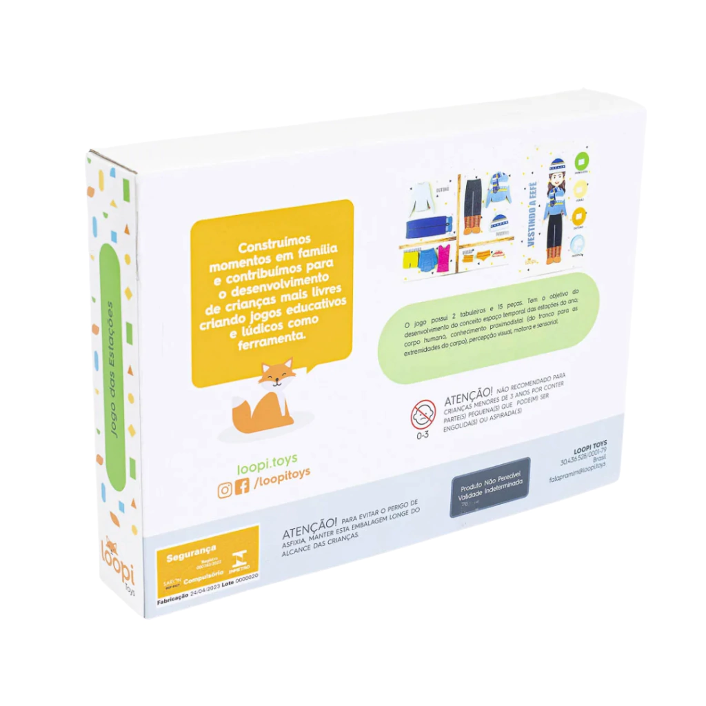 O Jogo das Estações – Vestindo a Fefê é ideal para crianças a partir de 3 anos. Estimula coordenação motora, raciocínio lógico e ensina sobre as quatro estações do ano de forma lúdica.