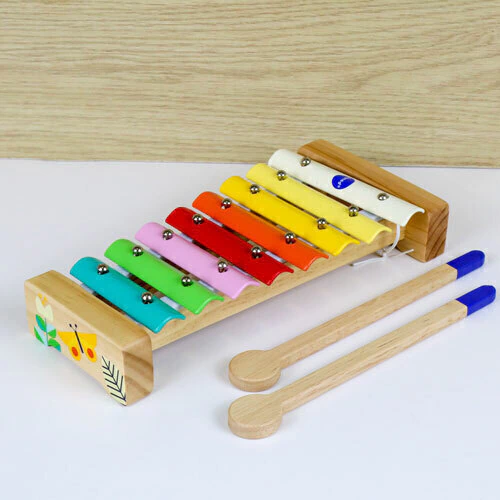 1 xilofone de 8 notas (madeira e metal) com 2 baquetas