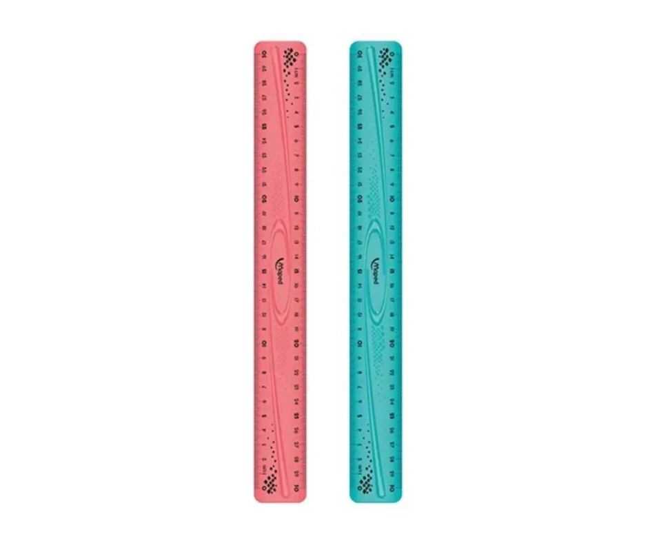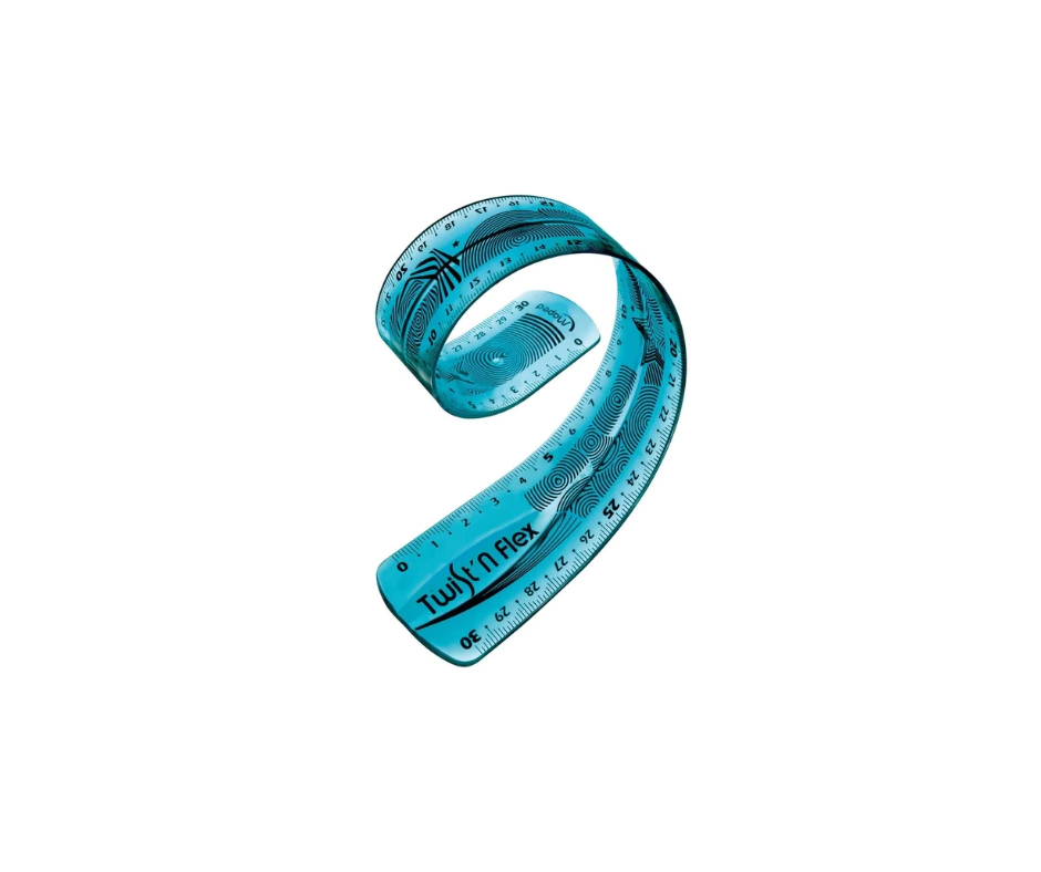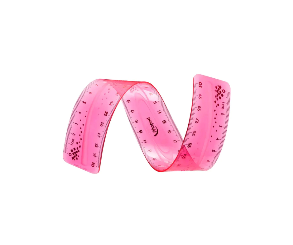 Essa régua é 100% flexível e inquebrável, podendo ser torcida e enrolada repetidamente sem perder a forma. Ideal para uso diário, com um tamanho compacto de 30cm.