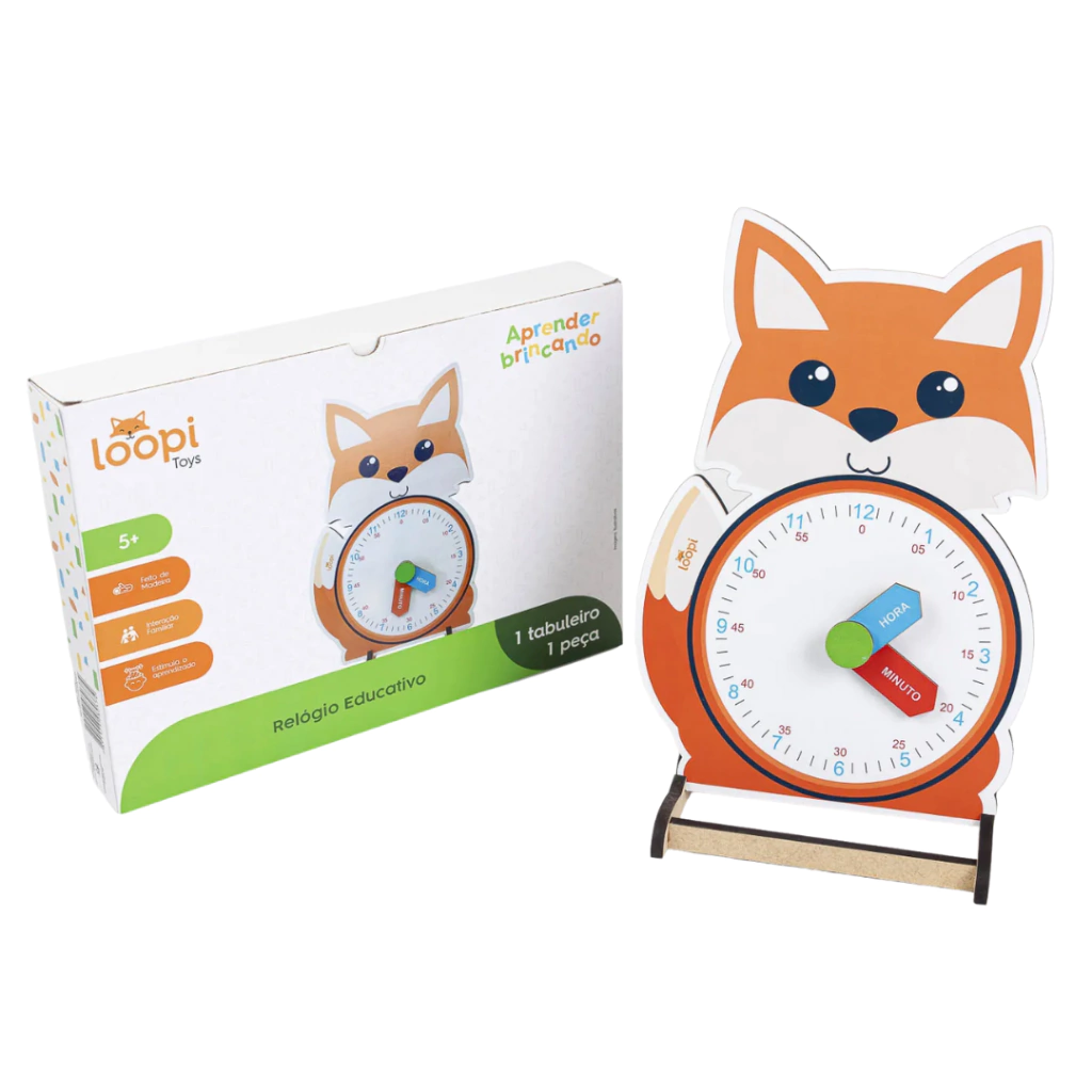 APRENDIZADO LÚDICO • ENSINA LEITURA DAS HORAS • DESENVOLVE RACIOCÍNIO E NOÇÕES TEMPORAIS • MADEIRA RESISTENTE